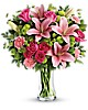 Gorgeously girly! Like sending a party in a vase, this breathtaking bouquet of blushing roses and lilies is a positively pink-tastic way to celebrate someone special.