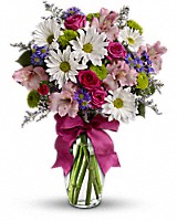 Looking for the prettiest bouquet in town? We've got the perfect all-around choice! Pretty Please is a flower bouquet with all the right stuff - a lovely mix of fresh flowers in breezy shades of pink, white, lavender and more at a wonderfully reasonable price, all tied up with a big pink bow. A great way to make someone smile.