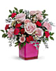 Available exclusively from Teleflora, this fabulous glass cube is white on the inside and fuchsia-colored on the outside. It will add a gorgeous splash of color to any occasion and it's great as a candleholder, too!